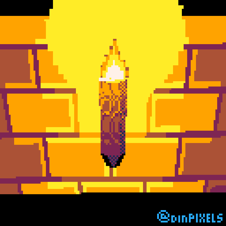 A lowpoly model of a torch made with picoCAD. The torch is surrounded by facing walls and a dark environment.